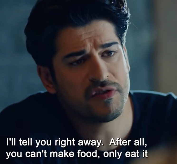 La risposta di Kemal, però, è disarmante nella sua brutalità: “Önyargılar mı? Ben direkt yargıladım. Sen bir kere yemek yapamazsın [müzik] ki. Sadece yersin.” Non c’è spazio per la sfumatura, non c’è apertura al dialogo. Lui ammette candidamente di averla già giudicata, di averla etichettata come incapace. La sua affermazione è un verdetto inappellabile: lei non sa cucinare, il suo ruolo è solo quello di consumare, non di creare. Un colpo al cuore per chiunque avesse sperato in un minimo di apertura.