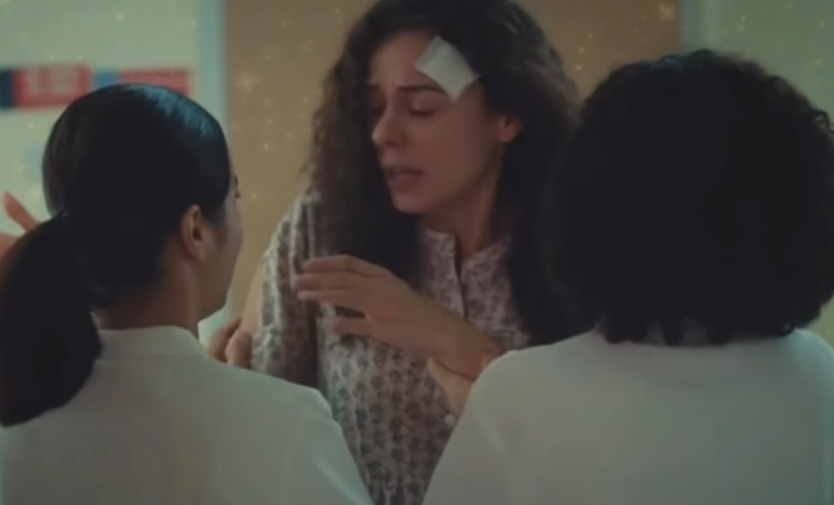 Frente a ella, Sarp yace. La imagen es de una fragilidad estremecedora. Inconsciente, casi ausente, su cuerpo inmóvil transmite la aterradora sensación de que la vida se le escapa de las manos, lenta e imperceptiblemente, como la marea que retrocede en una playa desierta. Cada respiración superficial, cada leve movimiento de su pecho, se convierte en una cuenta atrás agónica. Bahar, en un gesto de desesperación pura, aferra sus manos con una fuerza que revela el pánico que la atenaza. Es el miedo visceral a que, al soltarlo, él desaparezca para siempre, dejando un vacío insondable.