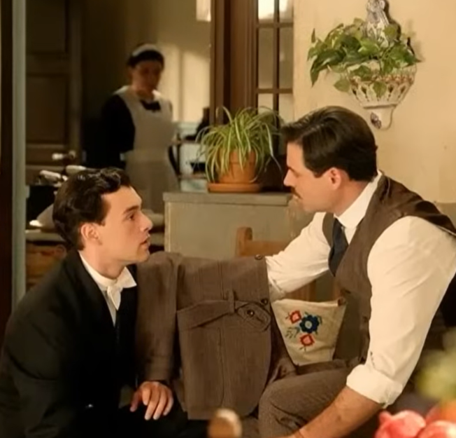 Il Capitano Lorenzo, con i pugni serrati e la mascella contratta, incarna l’indignazione e la sete di risposte. La sua pazienza è stata messa a dura prova dalla scoperta che la fuga di Ángela e Curro non è stata una semplice scappatella, ma un viaggio carico di implicazioni che lui, con il suo acuto intuito militare, ha percepito come molto di più. Davanti a lui, nel rigoglioso e tuttavia quasi claustrofobico invernadero, Leocadia, figura enigmatica e imperturbabile, si erge come una fortezza.