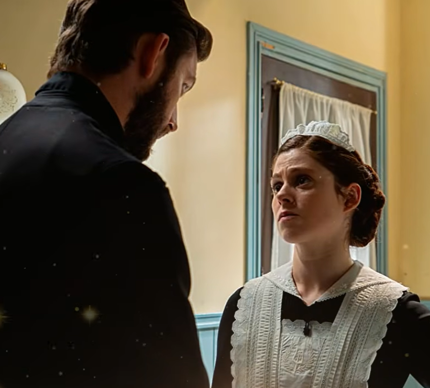 Imaginen la escena cargada de una tensión casi palpable. En este año 2026, la joven y decidida Ángela mira fijamente a los ojos de un hombre al que ha visto a diario en los pasillos de su hogar: un hombre que carga maletas, que sirve el té, que inclina la cabeza con deferencia. Pero ahora, en un instante que parece suspendido en el tiempo, su voz, apenas un susurro tembloroso, rompe el velo de las convenciones sociales con la pregunta más devastadora que se pueda concebir: “¿Es usted mi padre?” 💔