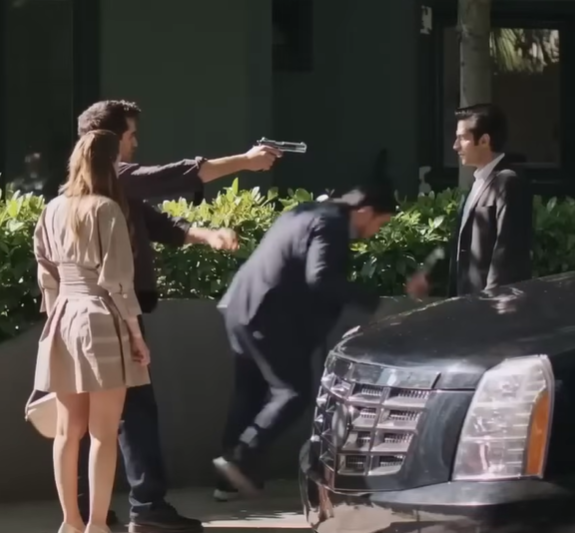 Pero la sorpresa de este encuentro, ya de por sí desestabilizador, fue eclipsada por una segunda sacudida aún más violenta. A pocos metros de distancia, emergió Ferit. La imagen que proyectaba era la de un hombre consumido por la furia: un arma en mano, el rostro endurecido por una ira implacable y la mirada gélida de una determinación inquebrantable. Su avance, acompañado por la figura enigmática de Safet, revelaba un objetivo singular y mortal. Sin embargo, el destino, siempre caprichoso, intervino en el momento más crucial. En el instante en que Ferit vio a Tarık junto a Seyhan, el curso de los acontecimientos dio un giro dramático e impredecible.